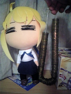 いやー、もうすぐですね。ぶっちゃけ、出来上がるかとても心配なのです。まあそれはさておき、売り物を売るときに、お釣りっていうものが出ると思うんですよ。そこで!もりくまが提供するお釣りプロジェクト!下の画像を見てください。へたれセイバーと同じくらいの大きさのもの、五円玉です!買ってくれる人にまたご縁があるようにお釣りは全部五円玉で返しちゃいます!次の日に初詣で使うなりなんなりしてくださいっ!